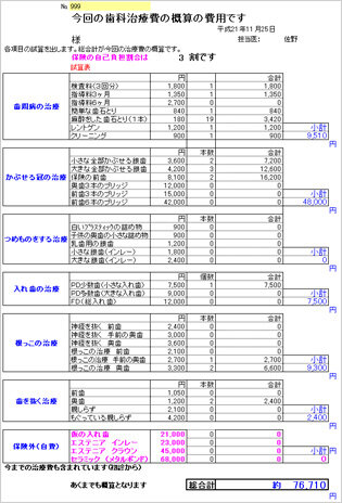 治療費概算表例 -